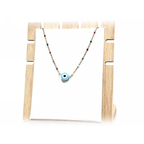 Κολιέ Ατσάλι 316L, αλυσίδα με διάφορες πέτρες και μάτι σε χρώμα Χρυσαφί..