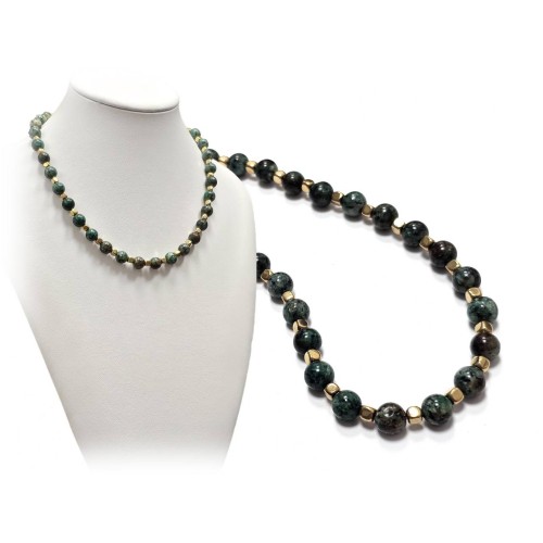 Κολιέ Πέτρα ατσάλι 316L, αλυσίδα με μαλαχίτη σε χρώμα Χρυσαφί..