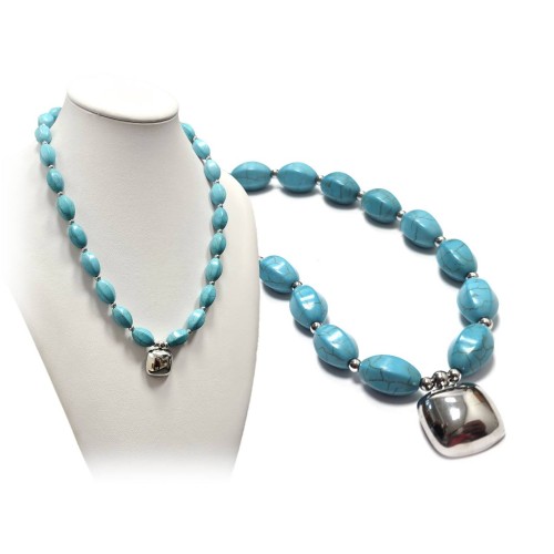 Κολιέ Πέτρα ατσάλι 316L, αλυσίδα με τυρκουάζ σε χρώμα Χρυσαφί..