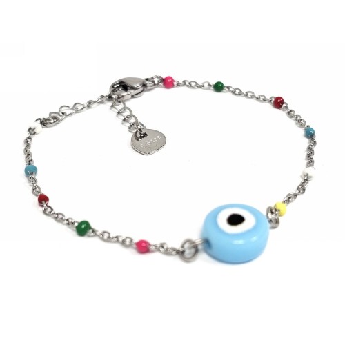 Κολιέ Ατσάλι 316L, αλυσίδα με διάφορες πέτρες και μάτι σε χρώμα Ασημί..