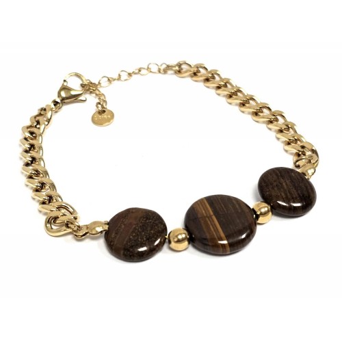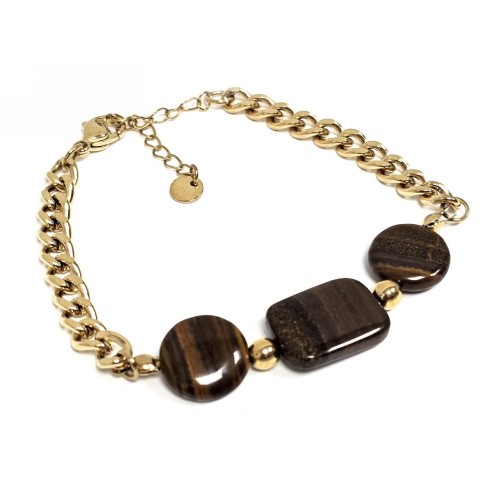 Βραχιόλι Πέτρα ατσάλι 316L, αλυσίδα με μάτι τίγρης σε χρώμα Χρυσαφί..