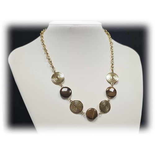 Κολιέ Πέτρα ατσάλι 316L, αλυσίδα με μάτι τίγρης σε χρώμα Χρυσαφί..