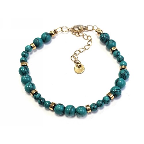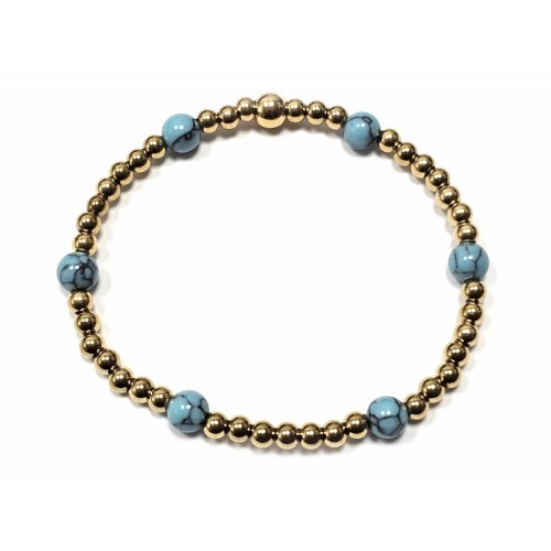 Βραχιόλι Πέτρα λάστιχο, 6# τυρκουάζ και ατσάλινα στοιχεία σε χρώμα Χρυσαφί..