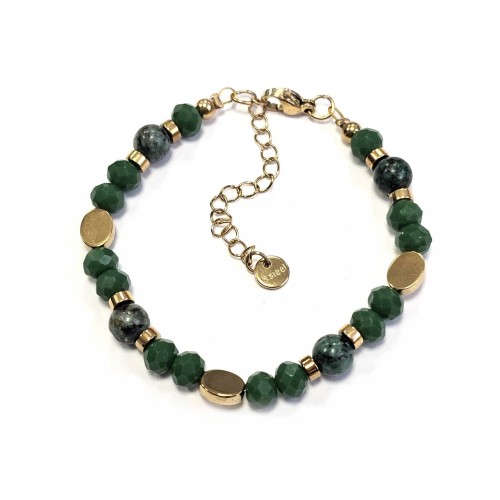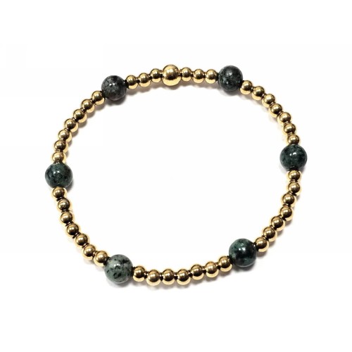 Βραχιόλι Πέτρα λάστιχο, 6# μαλαχίτης και ατσάλινα στοιχεία σε χρώμα Χρυσαφί..