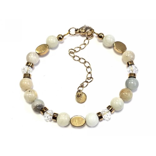 Βραχιόλι Ατσάλι αλυσίδα με 6# διάφορες πέτρες, κρυσταλλάκι με στοιχεία αιματίτη σε χρώμα Χρυσαφί..