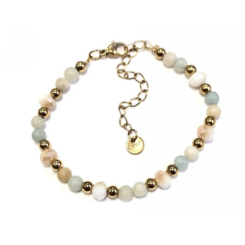 Βραχιόλι Ατσάλι αλυσίδα με 4# διάφορες πέτρες, κρυσταλλάκι με στοιχεία αιματίτη σε χρώμα Χρυσαφί..