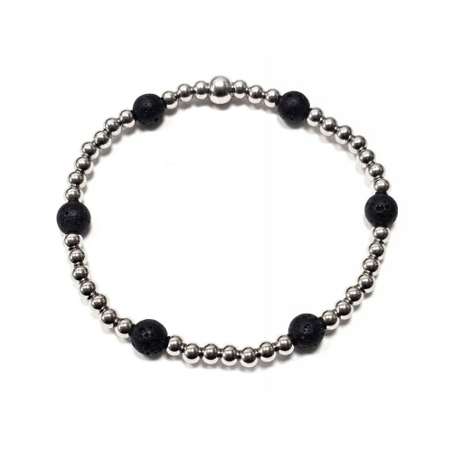 Βραχιόλι Πέτρα λάστιχο, 6# λάβα και ατσάλινα στοιχεία σε χρώμα Ασημί..