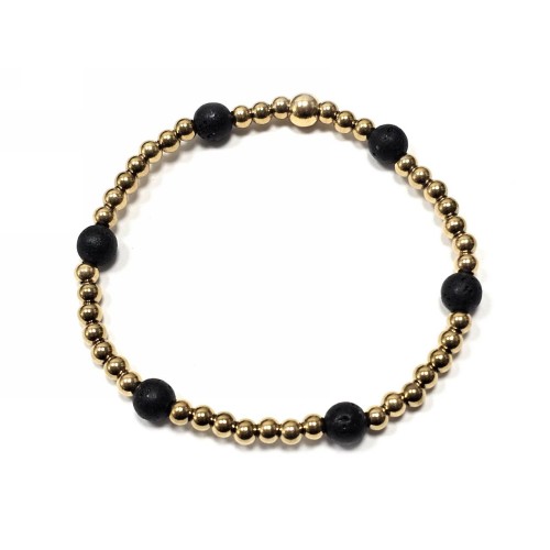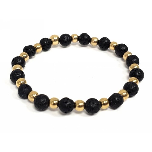 Βραχιόλι Πέτρα λάστιχο, 6# λάβα και ατσάλινα στοιχεία σε χρώμα Χρυσαφί..