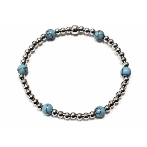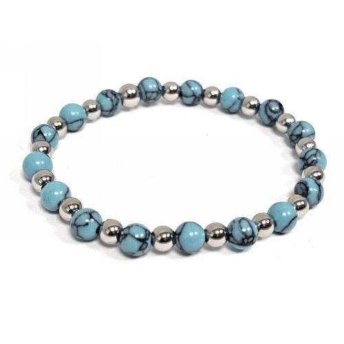 Βραχιόλι Πέτρα λάστιχο, 6# τυρκουάζ και ατσάλινα στοιχεία σε χρώμα Ασημί..