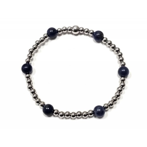 Βραχιόλι Πέτρα λάστιχο, 6# Lapis και ατσάλινα στοιχεία σε χρώμα Ασημί..