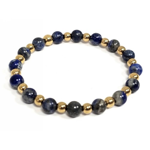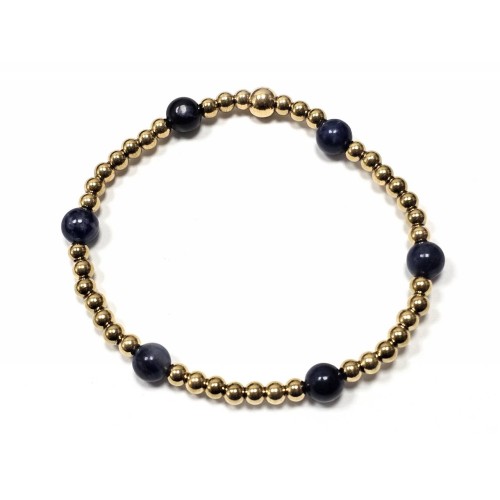 Βραχιόλι Πέτρα λάστιχο, 6# Lapis και ατσάλινα στοιχεία σε χρώμα Χρυσαφί..