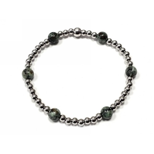 Βραχιόλι Πέτρα λάστιχο, 6# μαλαχίτης και ατσάλινα στοιχεία σε χρώμα Ασημί..