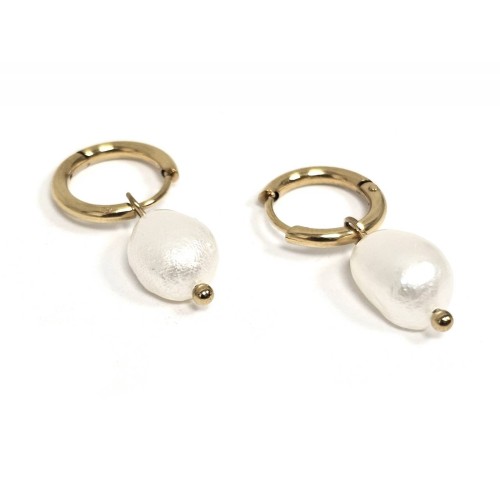 Σκουλαρίκια Ατσάλι 316L, κρίκος με μαργαριτάρι σε χρώμα Χρυσαφί..